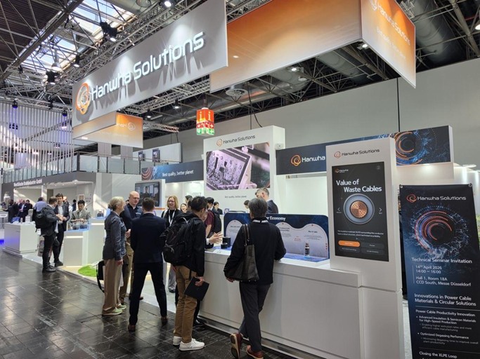 ハンファソリューションズのワイヤー&ケーブル部門は、4月13日から17日までドイツ・デュッセルドルフで開催される世界最大のワイヤー&ケーブル展示会「WIRE 2026」に出展し、超高圧ケーブル素材技術と循環型ソリューションにより、グローバル高付加価値市場への展開を加速させます。