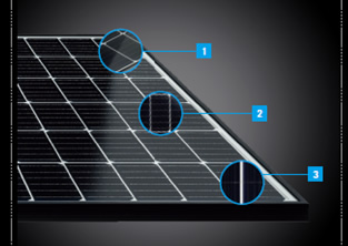 Qセルズが独自に開発した、高効率・高出力で、実使用環境下で優れた発電性能を発揮する新技術「Q.ANTUM DUOテクノロジー」を搭載することで、出力をはじめ信頼性も向上し、長期にわたり高い発電力を維持します。
