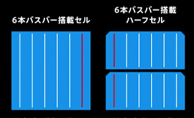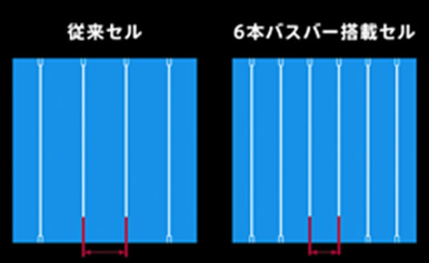 電気損失を低減するハーフセル技術や6本バスバー技術、光を効率よく活用するワイヤー・インターコネクションなどの技術を融合することで、高効率・高出力を実現しました。