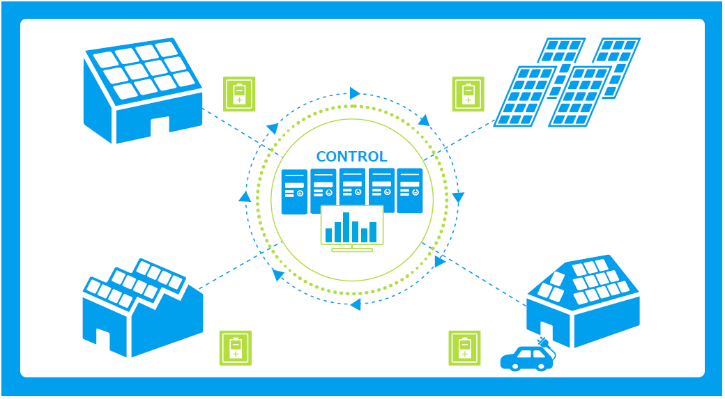 VPPは、「仮想発電所」とも呼ばれ、自治体や企業、一般家庭が保有している発電設備や蓄電池、電気自動車など、地域に分散して存在するエネルギーリソースをIoTなどの新たな情報技術を用いて遠隔制御し、集約することで、あたかも一つの発電所のように機能させることを言います。