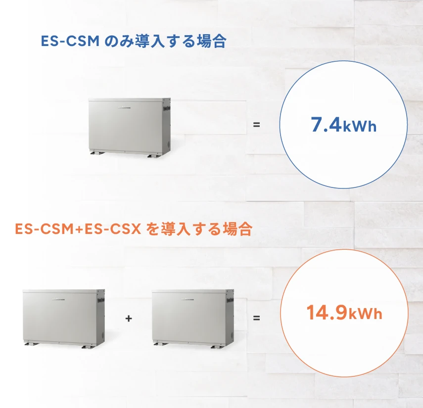 自分のニーズによって7.4kWhの単体か増設で14.9kWhの容量を選べます。